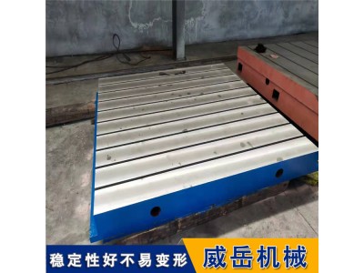 五、T型槽铸铁平台要求没有检验平台和划线平台那么高,它主要用于动力机械设备、船舶机械等的装配以及调试工作,一般的铸铁平台表面会带有T型槽,可以用来固定机械设备、机械部件等,方便装配。T型槽铸铁平台还可以拼接使用,对于比较大型的机械设备装配,当一块铸铁平台不能承担装配工作的时候,就可以将几对块铸铁平台拼接起来使用了。